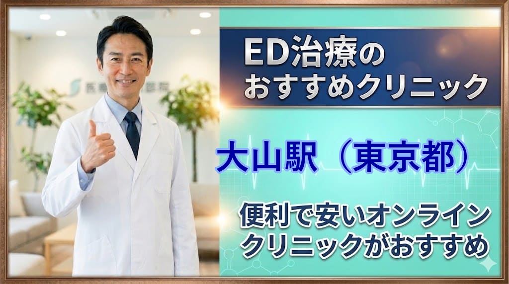 大山駅(東京都)周辺の板橋区でおすすめのED治療クリニックを詳しく紹介しています。便利なオンライン診療の可否、ED治療薬の種類の多さ、ED治療薬の価格などを比較し、ED治療クリニックで後悔しない選び方を紹介しています。