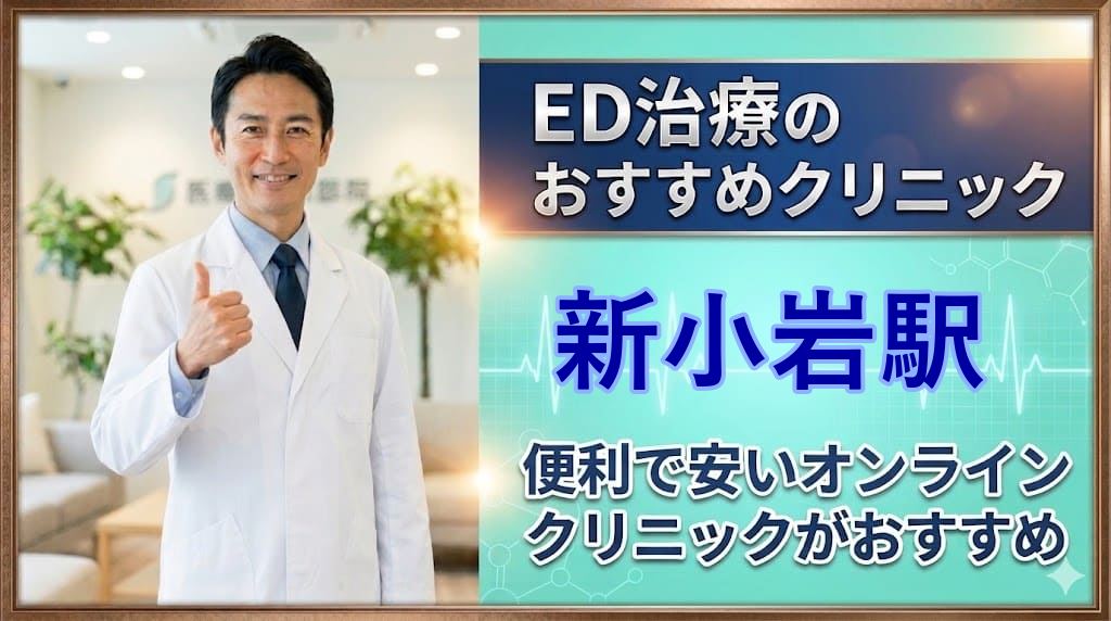 新小岩駅(葛飾区)周辺でおすすめのED治療クリニックを詳しく紹介しています。便利なオンライン診療の可否、ED治療薬の種類の多さ、ED治療薬の価格などを比較し、ED治療クリニックで後悔しない選び方を紹介しています。