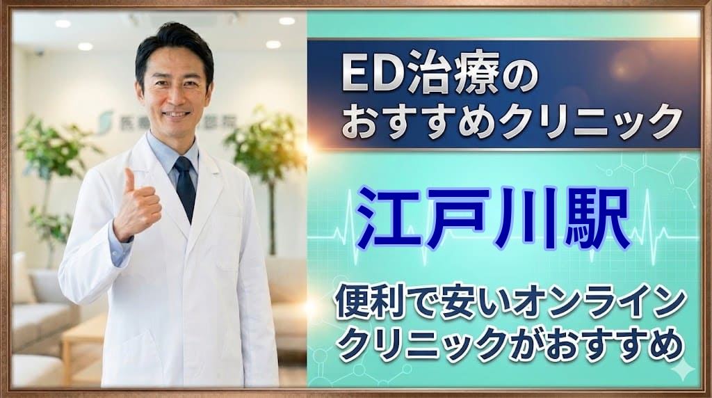 江戸川駅(江戸川区)周辺でおすすめのED治療クリニック15選!後悔しないED治療クリニックはどこ?【安い泌尿器科】安心して通えるクリニック15選を詳しく紹介。オンライン診療の可否、ED治療薬プラン、価格の安さなどを比較し、ED治療クリニック初心者向けの後悔しない選び方を解説します。江戸川駅エリアから15院を厳選しています。本記事をご覧頂くだけで、江戸川駅近隣のおすすめED治療クリニックが全て分かります。