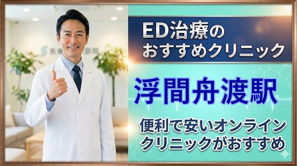 浮間舟渡駅(板橋区)周辺でおすすめのED治療クリニックを詳しく紹介しています。便利なオンライン診療の可否、ED治療薬の種類の多さ、ED治療薬の価格などを比較し、ED治療クリニックで後悔しない選び方を紹介しています。